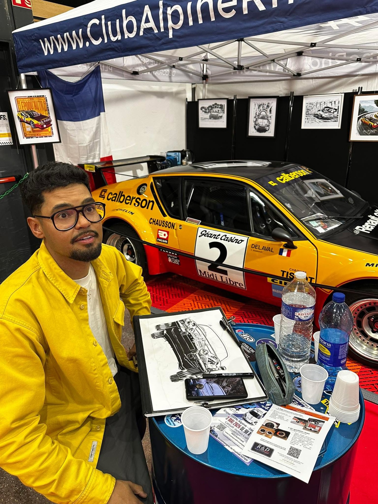Le samedi, Antoine alias ZimZam_ArtWorks a réalisé en direct un dessin de l’Alpine A210 de Jean-Claude Andruet, qui nous a fait l’honneur de passer sur le stand pour une photo souvenir.